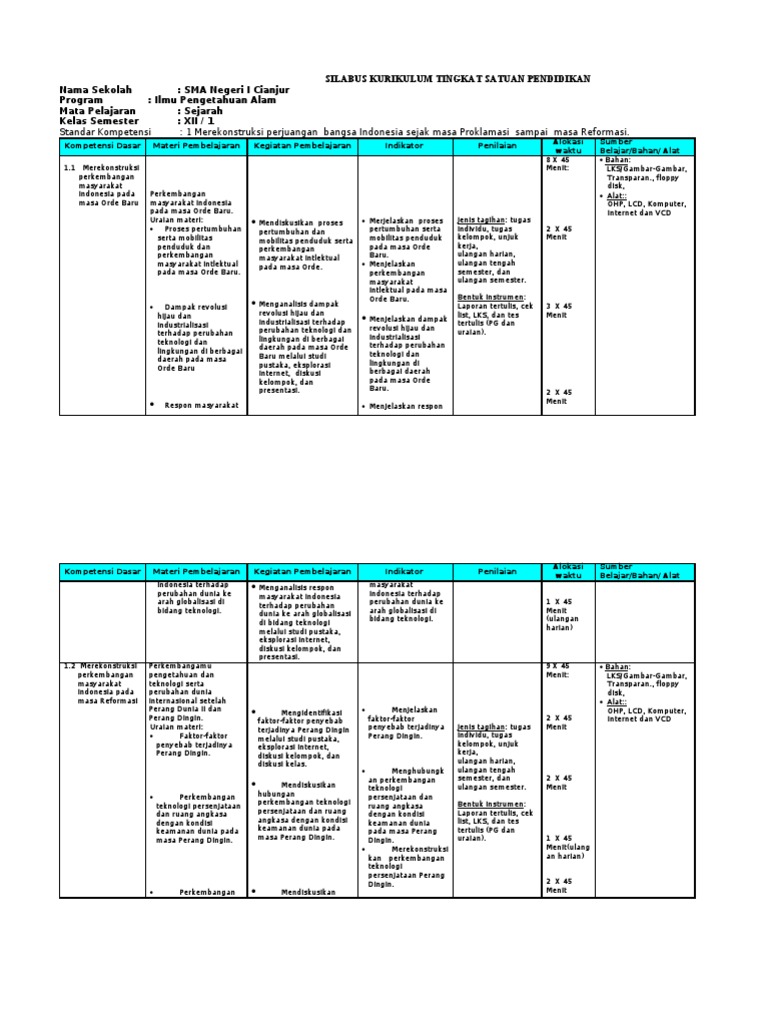 Silabus sejarah indonesia kelas x tersebut merupakan bagian dari perangkat pembelajaran yang memang diperuntukkan secara khusus dalam menyusun perencanaan pembelajaran.